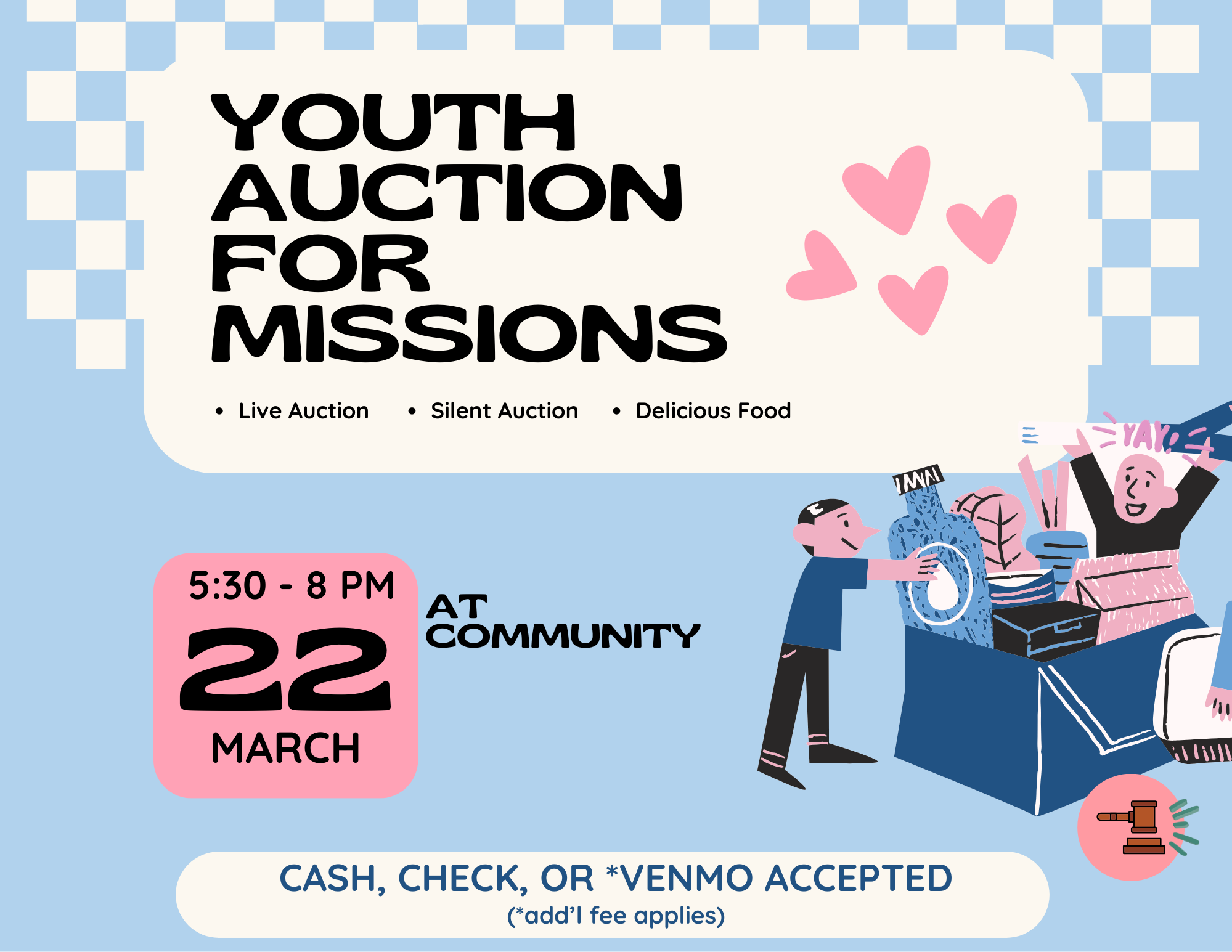 Youth Auction for Missions in the Sanctuary/Lobby/Cafe
